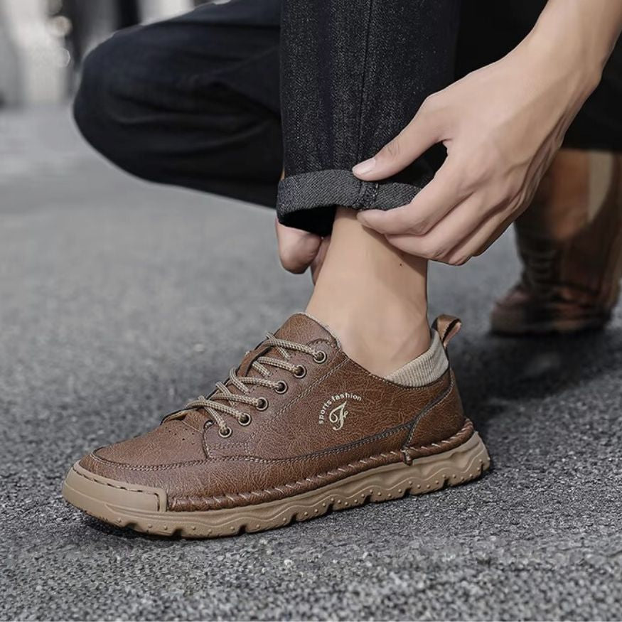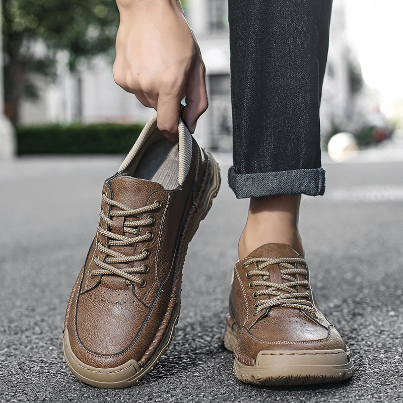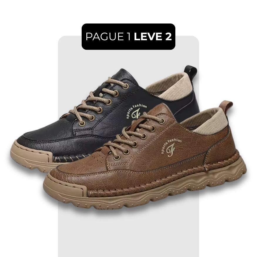 Cada par é finalizado manualmente por especialistas em calçados, com costuras reforçadas e acabamento refinado que expressa sofisticação e durabilidade.